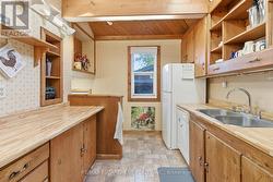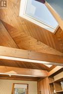 Located in a great Central Mountain neighbourhood just off Upper Wellington, this charming home is truly unique. The kitchen offers a cozy cottage feel with vaulted ceilings and skylights that fill the space with natural light. The spacious main-floor primary bedroom features an oversized closet with access to the attic - perfect for extra storage. The recently finished basement offers an additional bedroom, a two-piece bathroom with a shower rough-in, and new insulation throughout (2025). Step outside to a private backyard with a workshop/storage shed (with hydro - previously used for pool equipment) and a one-of-a-kind covered patio featuring a wood stove and hydro - perfect for relaxing or entertaining year-round. Roof and skylights replaced in 2021. RSA. (id:27)