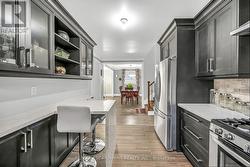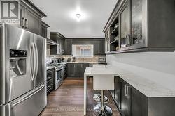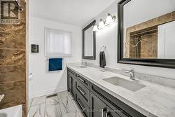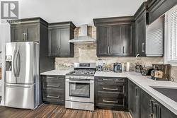 This spacious 4 level back-split has been renovated inside and out with quality finishes and attention to detail. Bright, open-concept main level with hardwood floors, spacious living/dining room, and custom kitchen with quartz counters, backsplash, and stainless steel appliances including gas stove. The upper level offers 3 bedrooms and a stunning 5-pc bath. Lower level features a family room with walkout to yard, side door entrance, bedroom, and 3-pc bath. The finished basement includes a rec room, laundry, cold room, and storage. Updated furnace, AC, roof, windows & electrical. The exterior boasts exposed aggregate driveway, walkways, porch with glass railings, fenced yard, and large shed with hydro. Located in a quiet cul-de-sac location with escarpment views, close to parks, trails, schools, and easy Red Hill/highway access. (id:27)