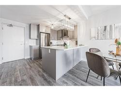 Welcome to exceptional living in Hamilton’s highly sought-after Mountview neighbourhood, where contemporary design meets everyday comfort. This beautifully appointed 2 bedroom, 2 bathroom condo offers an airy open-concept layout with stylish finishes throughout. The modern kitchen boasts sleek cabinetry, stainless steel appliances, and a breakfast bar that flows seamlessly into the spacious living and dining area — ideal for entertaining or relaxing at home. The primary suite features a walk-in closet and private ensuite, while the second bedroom provides flexible space for guests or a home office. Step out to your private terrace with southern exposure and enjoy tranquil views. Residents enjoy premium amenities including a fitness centre, theatre, games room, party lounge, and outdoor BBQ area. Perfectly located near scenic trails, waterfalls, parks, shops, and transit, this home offers the ultimate blend of comfort, convenience, and elevated condo living on the Hamilton Mountain.