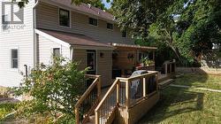 • Back of house featuring a lawn, a deck, and roof with shingles -
