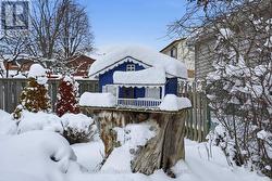 Bungalow located on the Hamilton Mountain with a 50 ft x 140 ft lot. The property features 1 bedroom plus den and a functional layout. Located on Limeridge Rd East with convenient access for commuters. The main level includes a living room with original hardwood flooring beneath the carpet, a primary bedroom, 4-piece bathroom, den/office, and an eat-in kitchen. The finished lower level features a large recreation room with a wood-burning fireplace, laundry area, and additional storage space. The exterior includes a covered patio, a private backyard, a detached garage, and driveway parking. Notable updates include 50-year shingles on the house (2015) and the garage (2024). Walking distance to grocery stores, Limeridge Mall, parks, and daily amenities, with transit access at the door and quick access to the LINC. (id:27)