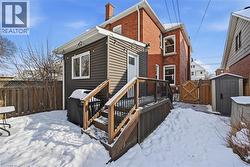 Welcome home! This beautifully renovated detached century home offers 3 bedrooms and 2 full bathrooms, thoughtfully updated from top to bottom, inside and out. Step onto the newly replaced front porch and into a bright, open living and dining area showcasing refinished hardwood floors, crown moulding, and a cozy electric fireplace that highlights the home’s timeless charm and character. The white eat-in kitchen has been replaced and features quartz countertops, stainless steel appliances, and direct access to a generous bonus space; perfect as a mudroom and pantry. The private, fully fenced backyard is a true retreat, complete with a newly replaced upper porch and lower deck surrounded by mature trees. Upstairs, the spacious primary bedroom features a bay window and a large closet with built-in organizers. Two additional spacious bedrooms, all with refinished hardwood floors, and a beautifully renovated 4-piece bathroom complete the second level. The fully finished lower level adds exceptional value with a comfortable recreation room, laundry area, large storage room, and a full 3-piece bathroom, ideal for guests or extra living space. Extensive updates include a replaced roof and eaves, siding, exterior doors, windows, driveway, porches, air conditioning, lead water service replacement, and backflow valve. Located in the heart of Downtown Hamilton, this beautiful, bright and spacious turnkey home is within walking distance to Gage Park and close to Hamilton GO, vibrant restaurants, shopping, and quick access to the QEW and Red Hill. A perfect opportunity to own in Hamilton’s growing and dynamic market, do not miss it! (id:27)