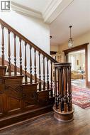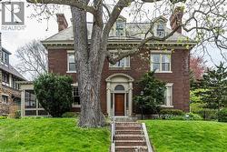 This charming Georgian style southwest home offers a rare opportunity to own an untouched piece of Hamilton historic architectural excellence. 45 Markland is defined by generous proportions and character, high craftsmanship and custom detail—hardwood floors, refined moldings, soaring ceilings, and beautifully preserved trim—the interiors exude both warmth and elegance. The well-planned layout features spacious principal rooms, a cozy den for quiet moments, a sunroom filled with natural light, and a screened porch perfect for summer afternoons. Four bright bedrooms, two with ensuite baths on the second floor, provide spacious living for families. A large attic with two bedrooms, full bath and unfinished loft with plentiful storage provides ready made potential for a studio, or even an in-law suite. Outside, the landscaped backyard, including raised flagstone patio, offers a private and tranquil retreat, ideal for entertaining or unwinding. At the end of a full driveway, a handsome brick two-car garage adds both practicality and character. Located at the base of the Niagara Escarpment, just minutes from downtown Hamilton’s restaurants, shops, parks, and transit, this home sits within one of the city’s most historic and sought-after neighbourhoods, Durand. Recent updates include a new high-efficiency furnace (2023). Designed by renown local architect Gordon Hutton of Hutton & Souter (designers of Christ the King Roman Catholic Basilica), 45 Markland is more than a residence—it is a beautifully preserved example of gracious family living. (id:27)