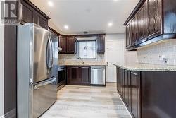 Welcome to this beautifully maintained 4-level backsplit, ideally situated in the highly sought-after community of Stoney Creek. Offering approximately 2,300 sq ft of finished living space, this home is perfectly suited for large or growing families. Step inside to discover a bright and airy main floor featuring an open-concept living and dining area - ideal for entertaining. The spacious kitchen is both stylish and functional, complete with granite countertops and brand new stainless steel appliances (2023).Upstairs, you'll find a generous primary bedroom, two additional well-sized bedrooms, and a full 4-piece bath. The lower level boasts a large family room that can easily be transformed into a luxurious primary suite, complete with its own 3-piece bathroom. Descend to the fully finished basement where you'll find a versatile rec room - perfect for a games area, home office, or even a 4th bedroom with double closets. This level also includes a dedicated laundry room, cold storage, and additional space for all your storage needs. The private backyard is a serene retreat, featuring a covered deck - perfect for enjoying your morning coffee or hosting evening gatherings. A double-wide driveway provides ample parking for up to 6 vehicles. Recent updates include: New screen doors (2022)Garage door with automatic opener (2022)All new flooring on the main and lower levels (2022)Central A/C unit (2022)New stainless steel appliances: fridge, stove, washer, and dryer (2023)Backyard deck (2022). Location is everything: Just minutes to major highways, and within close proximity to shopping, dining, movie theatres, parks, and excellent schools. (id:27)