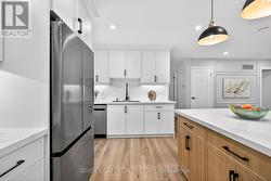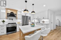 LEGAL TWO-FAMILY HOME - 3 BEDROOMS & 2 WASHROOMS ON MAIN FLOOR | 2 BEDROOMS, OFFICE & 2 WASHROOMS IN BASEMENT. This rare and hard-to-find property is located in a prestigious Stoney Creek neighbourhood and has undergone a comprehensive, professional "down-to-the-studs" transformation. Fully permitted and city-approved, featuring Master Suites in both units.The interior showcases premium flooring, new designer baseboards, new interior/exterior doors, and two custom designer kitchens with sleek backslashes and brand-new appliances. Flooded with natural light, most windows have been newly replaced .Newly upgraded 200-amp service with full ESA certification, two separate hydro meters, and an EV charger in the garage. New furnace, all-new duct work, new plumbing throughout, and an upgraded 1" municipal water supply line. Professional fire separation with resilient channels, Safe & Sound insulation, and hardwired interconnected smoke/CO detectors.Newly paved double 4 plus car driveway and located in a quiet, mature neighbourhood close to parks, schools, and transit Truly a turnkey, high-quality residence offering incredible versatility for multi generational living or premium rental income .This home was professionally designed and renovated to the highest standards. (id:27)