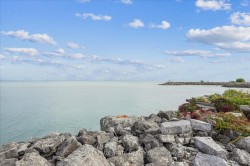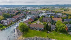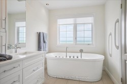 Experience unparalleled lakefront living with this stunning Newport Yacht Club residence, offering breathtaking views from nearly every room. Perfectly situated for boating enthusiasts with private mooring just steps from your door, yet with effortless QEW access for commuting. This "linked" townhome lives like a detached home, sharing no common walls and features parking for six, including a full double garage. The open concept main level is designed for both style and comfort, boasting an updated kitchen with quartz counters, crown molding, hardwood floors, a gas fireplace, and a separate dining room. Sliding doors lead to an expansive patio and a beautifully landscaped 100-foot yard, flowing to a private waterfront patio, ideal for sunrise coffees or evening sunsets over Lake Ontario. Upstairs, find three generous bedrooms, a home office, bedroom-level laundry, two fully updated bathrooms, and a primary suite with a second gas fireplace and private balcony showcasing panoramic lake and Toronto skyline views. Recent upgrades include new counters, sinks, faucets, roof, furnace, AC, light fixtures, and window treatments. A finished lower level with walk-up access adds versatile living space. Rarely available, this exceptional home offers a true waterfront lifestyle where every day feels like a getaway.