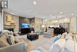 Absolutely gorgeous! This fabulously renovated bungalow offers over 4300 sq ft of refined living in the prestigious lakefront community of Fifty Point. Renovated within the last five years, the home blends high-end craftsmanship with warm, inviting style for a truly turnkey experience. A dramatic 11 ft foyer welcomes you into sun-filled spaces featuring 9 ft ceilings, elegant lighting, and rich new hardwood floors throughout the main level.The open-concept gourmet kitchen is the centerpiece of the home, boasting stone countertops, premium appliances, custom cabinetry, and an impressive island designed for cooking, gathering, and entertaining. The spacious dining area flows into a warm yet grand great room anchored by a charming wood-burning fireplace-perfect for everyday living or hosting.The Primary Bedroom feels like a private retreat with a walk-in closet and spa-inspired ensuite featuring a glass shower, deep soaker tub, and modern designer finishes. Two additional large bedrooms, a stylish 4-piece bath, and a chic 2-piece powder room complete the main floor.The professionally finished lower level, with its own separate entrance, offers a full in-law suite ideal for extended family or guests. It includes a generous rec room with a gas fireplace and bar, two big bedrooms with walk-in closets, a renovated 3-piece bath, and a functional eat-in kitchen.Step outside to your private backyard oasis, featuring a new saltwater pool with fibre-optic lighting, lush landscaping, a spacious patio, gazebo, and storage shed-perfect for relaxing or entertaining.With luxury finishes, thoughtful updates, and undeniable curb appeal, this home delivers comfort, style, and resort-like living. Close to the marina, beach, Bruce Trail, and 50 Point Conservation Area-ideal for nature lovers and outdoor enthusiasts. (id:27)