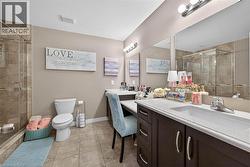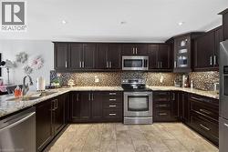 Solid custom-built home in a prime Hamilton Mountain location. The main level features an open-concept design with a spacious kitchen complete with granite countertops and upgraded cabinetry, a dining room with sliding doors leading to the rear yard, a comfortable living room with a gas fireplace, and a convenient bathroom. The second level offers four large bedrooms, including a generous primary bedroom with a walk-in closet, a five-piece ensuite, and second-floor laundry floor added convenience. The large basement provides excellent future potential with rough-ins in place for a recreation room, additional bedroom, and bathroom. Outside, enjoy a fully fenced backyard featuring a large deck and garden shed- perfect for entertaining or family living. Ideally located closed to schools, parks, public transit, shopping, and quick highway access, this home offers space, comfort, and long-term value in a highly desirable neighbourhood. (id:27)