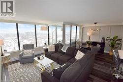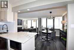 Welcome to your new address! Perched on the 17th floor in one of Hamilton’s finest condo buildings, you’ll find unit 1707, boasting 3 Bedrooms, 2 Full Baths, 1,265 sq ft of impeccably updated luxury, all the while highlighting a terrific walk score of 97! One look and you’ll be smitten! Features include: Corner unit, with Open-Concept Layout, perfect for entertaining; Central Heating & Air Conditioning (Heat Pump 2021); Living Room with ambience-enhancing Fireplace; Dining Room with chic accent wall; modern Kitchen featuring a Breakfast Bar, Quartz countertops and Stainless-Steel Appliances; Luxury vinyl flooring throughout; Elegant Crown Moulding; remote controlled Blinds, and more! Did I mention the stunning north-west views? Enjoy a beverage on your open balcony while taking in a spectacular sunset, and a bird’s eye view of Hamilton’s West Harbour! All windows are scheduled to be replaced in March of 2026. In-suite Laundry, underground Parking and Locker too! Located minutes to Downtown, TD Coliseum, Restaurants, Shopping, Parks and more. Put this “move in ready” unit on your “must see” list today! (id:27)