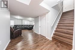 Spectacular 4-bedroom home with walk-out basement, ideally located across from a park and within walking distance to schools. This beautifully designed residence features a sleek, open-concept layout with impressive kitchen including quartz countertops, stainless steel dishwasher and microwave, elegant marble backsplash, breakfast bar, kitchen dining area with patio doors to balcony, extended upper shaker cabinetry, full-wall pantry, pot drawers and a lazy Susan-perfect for both everyday living and entertaining. This family friendly home also offers a separate formal dining area, adding versatility and charm and open to the impressive great room showcasing coffered 9-foot ceilings, smooth finishes, rich dark-stained hardwood floors, and an abundance pot lighting, creating a refined, magazine-worthy ambiance. The welcoming foyer features a custom niche seating area and the main floor also includes a guest powder room. Enjoy this carpet free home with hardwood flooring & ceramic throughout the first and 2nd floors. The fully finished basement showcases laminate flooring, 4 piece bath, office, spacious Rec room with walk-out to the rear yard and ample storage. The second level boasts four generously sized bedrooms, including a luxurious primary suite with a spa-inspired ensuite featuring a glass shower, soaker corner tub, and elegant finishes. This 2nd floor also provides a second full bathroom and spacious laundry room for every day convenience. Close to all Ancaster has to offer, including shopping, restaurants, golf courses and more. Room sizes approximate. (id:27)