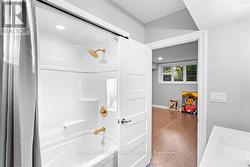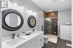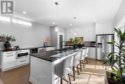 This stunning custom-built home sits on a landscaped lot at the edge of Hanover and offers a modern multi-level design filled with natural light and thoughtful details. The welcoming foyer opens to a gorgeous kitchen with a large island, abundant cabinetry, plenty of counter space, and a walk-in pantry, flowing into the dining area with patio doors to a deck featuring a gas hookup for BBQs. The bright living room showcases oversized windows, while a powder room and laundry add convenience to the main levels.Upstairs, three spacious bedrooms include a primary suite with a walk-in closet and ensuite, with the remaining bedrooms sharing a full bathroom. The lower level boasts a cozy family room, additional bathroom, utility room, and an unfinished recroom ready to make your own. With extras like a forced-air gas furnace, central A/C, and in-floor heating in the primary suite, lower level, and attached garage, this home is the perfect blend of comfort, style, and functionality. (id:27)