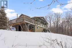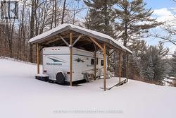 Private lakeside living with expansive acreage and natural surroundings on picturesque, springfed, Whiteduck Lake. Located on a municipal road, this cozy and well-maintained 3-bedroom, 2-bathroom home offers year-round living or the perfect family getaway. The home features 2 bedrooms and full bath on the main floor, along with kitchen, dining area and living room, and cozy office nook, all with astonishing views and walkout to deck. The finished walkout basement adds extra living space, with 3rd bedroom, including walk-in closet, 2 pc bathroom, sitting area and laundry. All set on a beautifully sloping 6.5-acre lot that leads down to the water's edge, surrounded by mature trees and offering exceptional privacy with only a handful of residences on the lake. The property includes a detached garage ideal for parking or a workshop, complete with an attached carport. A second dwelling on the property, (without water or septic) is heated and insulated and offers exciting potential for future use. Additional features include a portable generator with dedicated generator hook-up to the house, as well as a camping trailer with a covered lean-to and deck, providing extra space for guests or recreational use. Ideally located just 5 minutes to Combermere, 20 minutes to Barry's Bay, 40 minutes to Bancroft, and approximately 3.5 hours from the GTA. This unique waterfront property combines natural beauty, privacy, and versatility in a sought-after setting. A rare opportunity to enjoy peaceful lakefront living surrounded by nature. (id:27)
