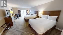 DEERHURST RESORT - BAYSHORE COMPLEX LOOKING OVER PENINSULA LAKE - Top floor waterfront condominium located in the Bayshore complex at Muskoka's premier resort - Deerhurst Resort. This waterfront unit offers a great view over Peninsula Lake and is steps away from the beach. Inside the unit, you will find a large great room with two queen beds, a sitting area, a flat-screen TV, a bar fridge, and a full bathroom. The unit is on the rental program, with the resort providing revenue to the unit owner. For 2024, the owners' share of revenue was $14,360. Revenue for 2025 not including December 2025 was $15,661 (December 2025 revenue to follow).The monthly condo fee is $563.30 plus HST (HST should be recoverable), and the annual property tax of $1597. Enjoy the resort lifestyle - golf, beach, pools, tennis, trails, restaurants, and more. HST is applicable to the sale of this unit and is recoverable. The unit is a large hotel room; all Bayshore units must be kept on the rental program with the resort. Great unit - Great location and an amazing resort! Live, vacation and invest in Canada! (id:27)