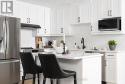 Let's start with the upgrades - they really elevate how this home lives! In the kitchen, quartz countertops extend seamlessly into a full quartz backsplash, a refined finish that sets the tone. A complete appliance package is already in place, including higher-end selections like the induction cooktop. The upgrades carry through the entire home, including hardwood all across the main floor, a finished lower level w/ a bathroom, & a fenced backyard. As an end unit, additional windows & west-facing living spaces keep the home bright well into the evening. The layout feels intuitive & comfortable. The island offers casual breakfast bar seating & banquette-style dining area feels easy and inviting. In the living room, the fireplace adds warmth & a subtle layer of ambiance without overwhelming the space. Upstairs, three bedrooms offer flexibility for family, guests, or work-from-home life. The primary features double-door entry & a beautifully upgraded ensuite. The lower level was recently finished and features a second fireplace along w/ a bathroom. It's a well-appointed space that can evolve over time. Outside, there is a natural gas BBQ hook-up. The fully fenced backyard offers everyday peace of mind for young kids & pets. Plus, pickleball courts & a playground are just around the corner. Built in 2024, the home offers full Tarion coverage. There is the convenience of an attached garage. From the street, everything presents beautifully - polished, welcoming, & a home to be proud of. This neighbourhood is one people chose intentionally. Different stages of life coexist comfortably. Young families, established households, & retirees. You're close to healthcare, close to downtown, & surrounded by amenities that make day-to-day life feel straightforward & easy. Starting from a builder base, recreating this home - w/ its upgrades and finishes - would cost more & take longer today. There's a thoughtfulness you can feel the moment you arrive. It feels like a place you stay. (id:27)