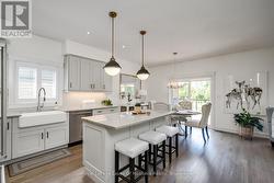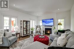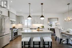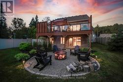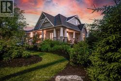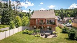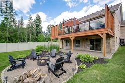 Discover this beautifully crafted all-brick bungalow offering timeless design, modern comfort, and a serene Muskoka lifestyle. Perfectly positioned on a premium corner lot just steps from the Huntsville Golf & Country Club, this turn-key home blends the best of country tranquility and in-town convenience. Inside, a bright and open layout welcomes you with 9-foot ceilings, rich hardwood floors, and abundant natural light. The spacious main level features two bedrooms and 1 1/2 baths, including a primary suite with vaulted ceiling details and a clever laundry nook with folding ledge for everyday ease. At the heart of the home lies a custom chef's kitchen with granite countertops, a central island, premium KitchenAid appliances, and a gas hookup for the stove-a perfect space for cooking, gathering, and entertaining. The walkout lower level is fully finished, offering a versatile space ideal for guests, teens, or extended family. Complete with a full bathroom, oversized egress windows (56 x 24), and a 6-foot patio door, it's bright, inviting, and easily adaptable as a second living area or in-law suite. Thoughtful touches abound throughout-two gas fireplaces, 200-amp electrical service, gas BBQ hookup, reverse osmosis system, exterior Ring cameras, wireless keyless entry add everyday comfort and convenience. Step outside to your professionally landscaped, pool-ready backyard featuring a 32 x 15 cedar deck, custom basketball court, irrigation system, and garden shed, all enclosed by a low-maintenance vinyl fence. The charming wraparound front porch offers the perfect vantage point for morning coffee or sunset views along peaceful Golf Course Road. With quick highway access, modern upgrades, and top-tier craftsmanship, this home offers a complete move-in-ready lifestyle-combining luxury, functionality, and Muskoka charm in one stunning package. (id:27)
