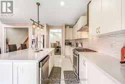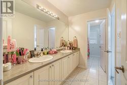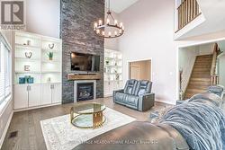 Welcome to this bright and spacious 3,097 sqft 4 bedroom gem. Step inside to a bright, airy foyer with large porcelain tiles that continue through the kitchen and laundry. Separate family, living and dining rooms offer hardwood floors and easy flow for entertaining. The open to above living room showcases a floor to ceiling brick fireplace framed by a built in wall unit with pot lights. The gourmet kitchen presents a large island with wine fridge, quartz counters, a tile backsplash, stainless steel appliances and a gas stove, plus a walkout to the backyard. A beautiful main floor office with French doors can be used as a bedroom. Upstairs you will find four generous bedrooms with ensuite access, including a primary retreat with two walk in closets and a five piece ensuite. The full basement includes a separate walk up entrance for flexible future use. Brick and stone exterior. Close to schools, parks, shopping and commuter routes. (id:27)