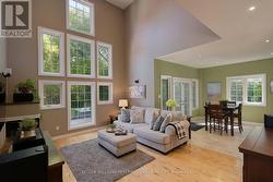 WELCOME TO LAKESIDE LIVING. This stunning home is nestled in the quiet enclave of Belle Ewart. Cooks Bay a mere minutes from your front door. Beaches, an awesome sandbar, ice fishing, sledding. All a part of your new life***The main floor offers a stunning living room with a18-foot ceiling, tons of windows bathing the room in light. And gas fireplace. Huge kitchen with gas cooktop, double oven, granite counters and storage galore. The large breakfast/dining area overlooks both the kitchen and living room providing a complete open concept family and entertainment space. Walk out directly to a large deck and hot tub. Almost complete privacy. Main floor also has a home office with its own walk out to the deck. That's right. Need a quick refresh away from the office. Step right outside. A large laundry room provides tons of closet space; direct walk out to the side yard; and another direct walk out to the 2-car garage***Upstairs provides a spacious primary bedroom with extra large walk in closet and a private spa-like ensuite - soaker tub, glass shower, double sinks. Two additional and well sized bedrooms complete the main living space***The stunning finished basement is its own oasis/escape. Main rec room space provides built in speaker system and seating area all to be enjoyed in front of a custom built TV area with electric fireplace. Off to the side is another spacious rec room area with small kitchenette area. Offers home gym or more rec room space opportunity. Pool table, ping pong table, Texas Hold-em table. You complete the gaming room you would like. A 4th bedroom offers additional family or guest space or is ideal for a home gym or home office flexibility (just in case you want the one upstairs to be more like a little den/book nook!!)***And back to the private yard. Open, spacious. Large shed off in one corner. Hot tub. Family BBQs are for sure some fun times waiting. Incredible privacy with a forested area behind and to one side of the yard***WELCOME HOME!!! (id:27)