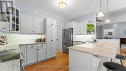 Welcome to this well-maintained O'Malley-built bungalow located in Kincardine's desirable Stonehaven subdivision. Beautifully landscaped and set on a private lot, this elegant home has been converted to natural gas (furnace, fireplace and BBQ hookup). The thoughtfully designed floor plan makes this home functional for families, retirees, or shared living, featuring 4 bedrooms in total (two on the main level and two in the fully finished basement), along with 3 full bathrooms. The open concept living room offers a refined space for entertaining, complete with a cozy gas fireplace and tray ceiling, and overlooking the private backyard. The inviting eat-in kitchen is the heart of the home, and offers a panoramic view of the yard, and access to the partially covered deck. Relax and enjoy the sounds of nature while BBQ'ing, soaking in the hot tub, or tending to your garden beds; all within a fully-fenced and private yard that is ideal for children and pets. The primary suite is a true retreat boasting a walk-in closet and a luxurious 4 pc ensuite with jacuzzi tub. A well-configured laundry/mudroom off the garage adds everyday convenience, and the fully finished basement provides abundant additional living space with a versatile family room and two additional bedrooms. Ideally situated in this established neighbourhood, walking distance to the park and soccer fields, and close to the walkway and bridge at the north end of Park Street. This home is a pleasure to show and truly a must-see for those seeking quality, comfort, and location all in one exceptional package. (id:27)