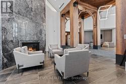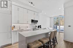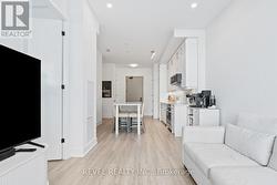 Welcome to Suite 123, a beautifully designed 667 sq. ft. unit + private outdoor patio. A residence that blends modern comfort with upscale, custom finishes. Featuring 10-foot ceilings and floor-to-ceiling windows in the living area, this home is filled with natural light and offers an airy, sophisticated atmosphere.The open-concept kitchen has been fully upgraded, showcasing custom cabinetry extended to the ceiling, integrated appliances with full size stove and microwave , and a stunning custom quartz countertop island with seating for up to 10-perfect for entertaining, hosting, or everyday living. Thoughtfully designed custom closets throughout elevate both function and style. A spacious den offers versatility as a home office or guest space, while two full bathrooms provide added convenience and privacy. Step outside from your private ground floor entrance to your walk-out terrace, complete with a dedicated gas line for bbq and water bib, creating an ideal setting for outdoor dining, entertaining, or relaxing evenings at home. Residents of King Terraces enjoy access to a curated collection of amenities, including a resort-style pool, sauna, steam room, rooftop terrace, fitness centre, elegant party lounge, and 24-hour concierge service. Suite 123 is where luxury design meets everyday ease-a rare ground-floor retreat with exceptional upgrades and seamless indoor-outdoor living. (id:27)