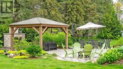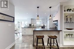 Discover a rare opportunity to own this stunning 5-bedroom, 3-bathroom bungalow on a private 2-acre lot in King-perfectly suited for multi-generational families seeking space, privacy, and flexibility. Designed for comfort, elegance, and functionality, this exceptional home offers premium amenities and thoughtful separation of living spaces.Step outside to beautifully landscaped gardens featuring a tranquil koi fish pond, mature trees, and a stunning waterfall, all maintained by an in-ground sprinkler system. Enjoy evenings outdoors under the spacious gazebo with a gas fireplace or unwind in the hot tub.Inside, the home boasts a separate two-bedroom apartment with a full kitchen and dining area, making it ideal for extended family, in-laws, or independent living while remaining under one roof. The main kitchen and dining area overlook the breathtaking waterfall, creating a serene backdrop for everyday living and entertaining.The spectacular great room features floor-to-ceiling windows, a striking stone fireplace, and a walkout to the backyard oasis. Practicality meets luxury with remote gated access, 3-phase electrical service, and a heated garage accommodating up to 6 vehicles or offering an expansive workspace-ideal for hobbyists, contractors, or additional storage.This extraordinary property blends rural beauty with modern convenience. Located in the Township of King, it offers peaceful seclusion while remaining just minutes from shopping, dining, and Highway 400.UPGRADES: Patio (2022-2024), Sprinklers (2022), Furnace (2022/2010) (id:27)