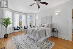 Offering versatile ownership, this downtown condo is ideal for an investor or a professional seeking a city residence. Located in a rarely offered, quiet, self-managed, heritage building, Villa St.Claire, with many long-term owners, the property reflects pride of ownership and long-term stability. Set in a fantastic downtown location in Sydenham Ward, it is within walking distance to everything Downtown Kingston has to offer, including a five-minute walk to Queen's University, Hotel Dieu and Kingston General Hospital. This spacious top-floor unit, currently configured as a four-bedroom, boasts impressive 9-foot ceilings and a bright, carpet-free interior. Rich in historic character, the condo features gorgeous original trim, original doors, hardwood floors throughout, and charming built-in storage elements, all complemented by neutral décor within a solid brick-built structure. Two private balconies offer inviting outdoor retreats, while a shared outdoor greenspace enhances the setting. Additional highlights include ensuite privatelaundry, excellent in-unit storage, dedicated bike storage, and one parking space. (id:7525)