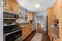 Located in Kingston's highly desirable Calvin Park neighbourhood, this 4-bedroom single-family home offers over 2000sqft of finished living space and features an exceptional blend of lifestyle, location, and flexibility. Just a 5-minute walk to Centennial Public School and a 12-minute walk to LCVI, this is an ideal home for growing families. Alternatively, it could make an ideal rental or income-property opportunity, with potential to convert to 5-6 bedrooms and located only a 5-minute drive to both St. Lawrence College and Queen's University. The exterior offers excellent functionality with a double-wide driveway providing parking for four vehicle and a large fully fenced backyard with an in-ground pool, covered veranda with hot tub and no rear neighbours. Inside, the main floor features a spacious living room with hardwood flooring, leading to a modern kitchen at the rear featuring quality maple cabinetry, granite countertops, stainless steel appliances, tile backsplash and ceramic flooring. This level also includes and a generous family room with gas fireplace and 2-piece powder room. Upstairs, you will find four bedrooms with plenty of natural light and a 4-piece main bathroom. The lower level adds even more value with a 3-piece bathroom, laundry area, bonus room, and a large bedroom with a newer egress window. The single car garage adds addition storage space and offers a plug-in for your electric car. This is a rare opportunity to own a versatile property in one of Kingston's most established central neighbourhoods - ideal for families, investors, or those looking for long-term flexibility. Come check it out! (id:27)