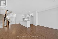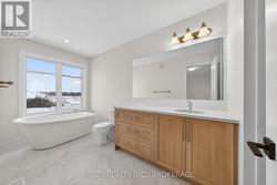 Welcome to The Camden Model! A move-in ready end-unit townhome with 2,160 sq ft of thoughtfully finished living space, located in Kingston's desirable northwest WoodHaven neighbourhood. The main level is highlighted by maple hardwood flooring, quartz countertops throughout, and a light-filled kitchen featuring white shaker-style cabinets, an upgraded sink, and a generous walk-in pantry. A gas fireplace adds warmth and character to the living area. Upstairs, the primary retreat offers a luxurious 4-piece ensuite with a freestanding soaker tub and a sleek walk-in glass/tile shower. The finished basement expands your living options and includes a bathroom rough-in for future flexibility. ENERGY STAR certified, this home blends modern design with efficiency and everyday comfort. (id:27)