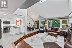 Welcome to estate living at Point St. Mark. If you have dreamed of a perfect family home nestled in a wonderful neighborhood this is the place for you. This architecturally pleasing custom home offers 4 beds & 4 baths built with no expenses spared. The quality of craftsmanship is evident throughout from the tastefully selected finishings to the detailed carpentry work. The gorgeous exterior features oversized arched window and door frames giving a grand appearance from the moment you arrive. Step inside to a spacious light filled foyer with soaring cathedral ceilings and a stunning central staircase leading to the upper level. Featuring both a main floor family room and living room, each with their own fireplace, there is no shortage of space to unwind or entertain. The newly renovated kitchen features high end appliances, quartz countertops and ample custom cabinetry. Offering both a formal dining room and an eat-in kitchen overlooking the central living area, this home offers the perfect family-friendly layout. Spacious main floor primary bedroom is complete with newly updated ensuite bath, walk-in closet and a walk-out to the rear. On the upper floor you will find 3 additional well-sized bedrooms and a full bath. From the upper level balcony you can appreciate views of the finely crafted details and the gleaming maple hardwood below. The lower level features a fully finished rec room, full-sized bath and generous floor plan with fantastic potential for use as an in-law suite, studio, workshop and much more. The downstairs space was thoughtfully designed to capture ample natural light complete with a walk-out to the rear patio. Combined area incl. the lower level exceeds 5000 sq ft. Other notable features include main floor laundry, an attached double garage with extra height doors and a Kohler generator system. Don't miss this opportunity to own a home that perfectly balances modern family living with an unbeatable location! Virtual tour & floor plans avail. (id:27)