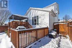 Immaculate Custom-Built Home in Prime Greenwood Park Location - Welcome to this meticulously maintained one-owner custom home, expertly built by Dennis Parenteau. This stunning residence perfectly blends quality craftsmanship with modern updates, creating an exceptional move-in-ready family home. Step inside to discover a bright, open-concept main floor featuring a spacious combined living/dining room with vaulted ceilings that flood the space with natural light. The seamless flow continues into the spacious kitchen, ideal for both everyday living and entertaining. A convenient main floor guest room/den with adjacent two-piece powder room offers flexible space for guests or home office needs. Direct access to the fully insulated garage adds year-round convenience. Upstairs, three generous bedrooms provide comfortable accommodation, accessed via a wide staircase equipped with a premium chairlift system (2 years young) The builder-finished lower level expands your living space with a welcoming family room, versatile bonus room, full bathroom, and combined laundry/utility area. Recent updates ensure worry-free living: all windows, front door and patio door replaced (2/3 years), furnace and shingles (approx. 9 years), and AC unit (5 years). Outside, enjoy your private oasis featuring a gorgeous two-tier deck overlooking a beautifully landscaped, fully fenced backyard complete with storage shed. Nestled in desirable Greenwood Park, this exceptional property offers proximity to all amenities with easy downtown and 401 access. Don't miss this rare opportunity to own a pristine, thoughtfully updated family home! (id:27)