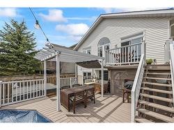 This charming 1800+ Sq. Ft. home is located on the east side near the CFB, RMC, the newest Limestone District Elementary school, great shopping area and a Secondary school. Four bedrooms and 4 bathrooms, featuring a primary bedroom with a bright ensuite. The spacious front porch leads into a foyer with an adjacent cozy sitting room. On your way towards the very spacious living room, with a gas fireplace and cathedral ceiling, you will notice a main floor laundry, an access door to the garage and a convenient 2 piece bathroom. The open concept kitchen has loads of storage space. Bright patio doors give way to the generous deck and pool area. As you head downstairs notice the spacious recreation room, a fourth bedroom and a 3 piece bathroom. The lower level walkout leads to a great entertainment area with a pool and a hot tub. Basement brand new kitchen and 200amp electric panel bring a lot of potential. Walk or cycle on the paved trail that surrounds this sought after community. Bus direct to Queen's University.