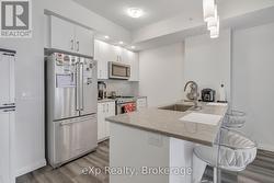 Discover one of the most desirable buildings in the city at Garment Condos! This spacious and well-designed unit offers exceptional value with a bright, open-concept layout and modern finishes throughout. The contemporary kitchen features sleek cabinetry, a convenient breakfast bar, and premium flooring that flows seamlessly into the living space. A generously sized bedroom, stylish 4-piece bathroom, in-suite laundry, and private balcony complete this comfortable and inviting home. Residents enjoy outstanding building amenities including a rooftop pool, fitness centre, party room, lounge area, yoga space, pet run, urban park, and sport court. Perfectly situated in the heart of Downtown Kitchener, just steps from Google, KPMG, Deloitte, the LRT hub, GO Train, Communitech, the Schools of Pharmacy and Medicine, Victoria Park, and an endless selection of shops, restaurants, and entertainment. A bright, modern condo in an unbeatable location-don't miss this opportunity! (id:27)
