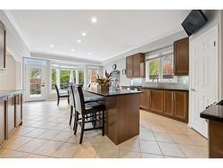 Welcome to this beautifully maintained 5 Bedrooms-4 baths, 2 offices home in Kitchener’s sought-after Doon South neighborhood—just minutes from Conestoga College, the scenic trails of Doon Creek Natural Area, and quick access to Highway 401. From the covered front porch, you’re welcomed into a bright and well-designed main floor that balances open-concept living with defined spaces for family life. The formal living room at the front of the home offers a peaceful spot to unwind, while the separate dining room provides an elegant setting for entertaining. The kitchen features rich cabinetry, granite counters, stainless-steel appliances, a central island, and a stylish backsplash—flowing into a breakfast area overlooking the backyard. A cozy family room with a gas fireplace completes the main level, creating a warm and inviting atmosphere for everyday living. Upstairs, the spacious primary bedroom serves as a relaxing retreat with a walk-in closet and private ensuite bath, while the additional 4 bedrooms are perfect for kids, guests, or a home office. The walk-out lower level opens directly to a stunning backyard oasis designed for relaxation and entertainment. Enjoy the elevated deck with glass railings, multiple seating and dining zones, and a hot tub for year-round enjoyment. Steps lead down to a fully fenced yard featuring an in-ground heated salt water pool, and mature trees offering natural privacy. House has 2 sets of stairs going to up and 2 sets going down. Located close to schools, and trails that wind through this vibrant community, this home offers the perfect blend of comfort, lifestyle, and convenience for the modern family.