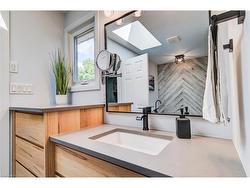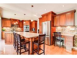Prime, Chicopee Court Executive Home backing onto Nature, Walter Bean Trail! Welcome to this tastefully decorated home nestled on a quiet, family-friendly, choice court in Kitchener. This beautifully maintained property offers picturesque views of the mature treed greenbelt and the Grand River, with direct access to the Walter Bean Trail, making it a nature lover’s dream. Inside, you'll find a renovated kitchen featuring high end cabinetry, built-ins, and gleaming hardwood floors, seamlessly connected to a spacious eat-in area and open-concept family room adorned with built in cabinetry. Step out from the family room with wood fireplace through French doors and onto the extra-large deck (six years young) with elegant glass panels, perfect for entertaining or relaxing while enjoying the tranquil surroundings. Upstairs, the oversized primary bedroom (20' x 12') serves as a luxurious retreat, complete with a modernized ensuite boasting a soaker jet tub, contemporary tiling and glass shower enclosure all beneath a skylight for the ultimate spa-like experience. Note primary bedroom's spacious walk in closet featuring an organization system by California Closets. The finished walkout basement features oversized windows and French doors, offering abundant natural light and flexible living space. Wet bar and large, open rec room provide additional entertaining options. The home is professionally landscaped, enhancing its curb appeal and outdoor enjoyment. Note the shed in back yard - ideal for additional storage with mezzanine level perfect for children adventures. This is a rare opportunity to own a home that combines comfort, style, and stunning natural beauty in one of Kitchener’s most desirable neighbourhoods.