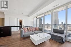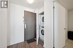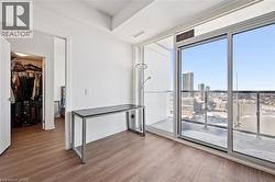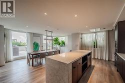 This 1 bedroom plus den condo is located in the bustling downtown area, offering a modern and stylish living space. As you step into the unit, you are greeted by a spacious open-concept living room and kitchen area, which is perfect for entertaining guests or relaxing after a long day. The kitchen features high-end stainless steel appliances, a kitchen island, and a sleek backsplash. The countertop provides ample space for meal preparation and doubles as a breakfast bar for quick meals. The bedroom is spacious and features large windows, which provide plenty of natural light and a stunning view of the city skyline. This unit features electric motorized blinds on all windows. The den can be used as a home office, or additional storage space, adding to the flexibility and functionality of the unit. The bathroom is elegantly designed with modern fixtures, a vanity sink, and a full-size bathtub. Other amenities include exclusive storage locker and parking, in-unit laundry, central air conditioning and heating, and a private balcony that provides a breathtaking view of the city. The building offers additional amenities, such as a fitness centre, a rooftop terrace, a walking/running track on the rooftop and 24-hour security, ensuring safety and convenience. This 1 bedroom plus den condo is perfect for those who want to experience the urban lifestyle with easy access to restaurants, cafes, shopping, and entertainment options that downtown has to offer. It is ideal for young professionals, couples, investors or small families who are looking for a comfortable and convenient living space in the heart of the city. (id:27)