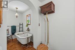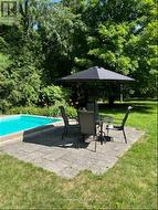 Where do I begin with this special property? Set on a one acre lot mere minutes to 401 access, this unique offering gives an inviting living space while also presenting an opportunity to work from home. Circa mid 1800's log home with a living room addition, you'll appreciate the character that has been retained with exposed log walls and warm wood floors. Upon entering, there is a nice mudroom off the driveway with a convenient laundry room adjacent to it. This leads into the living room with its beautiful woodburning fireplace. A den off the living room takes you into the original home with its lovely dining room, eat-in kitchen with door to the large front porch and there a 3pc bathroom that has a clawfoot tub. A sunroom off the rear of the house is the perfect spot to host summer meals. The upper floor has a spacious primary bedroom with lots of closet space and a pleasant surprise in the form of a 3pc ensuite! 2 additional bedrooms share this level. The backyard makes you forget you are actually in the City! Backing onto conservation land, there are tall trees, a 10' x 10' plunge pool that is 4' deep and tennis court. This is where you will be spending many hours in the summer. A fire pit for making smores under the stars is also waiting. The detached garage ... not only can you park your cars in it, there is an L-shaped storage room behind as well as a workshop area with access to the pool area that could be transformed into a cabana! Upstairs hosts a games room on one side and an oversized office with skylights and a 3pc bath on the other! For those working from home, it offers a space with tons of natural light while giving separation from the house. Perhaps it could be a guest suite or nanny quarters. The possibilities are endless! The location is so convenient for commuters needing access to the 401 heading east or west as well as a short drive for groceries, Conestoga College - Doon Campus and Whistle Bear Golf Club. Photos do not do it justice. (id:27)