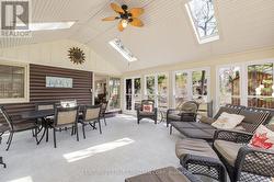 Nestled just steps away from the serene shores of Lake Huron, this charming and unique cottage offers the perfect escape from the hustle and bustle of everyday life. Surrounded by lush, towering trees, the cabin exudes rustic warmth and tranquility, making it an ideal destination for those seeking a peaceful getaway.The cabins natural wood exterior blends seamlessly with its forested surroundings, providing both privacy and a stunning backdrop. Inside, the cabin boasts a cozy, inviting atmosphere with a gas fireplace, and large windows that allow you to enjoy views of the trees and hear the nearby lake. Many updates throughout that help maintain the original integrity of the cottage including, hardwood floors, replacement windows, 100 amp service, fully winterized throughout and a fabulous sunroom with soaring ceilings and stone floors. A gas bbq and hot tub compliment the patio with ample areas to entertain, relax and enjoy. Whether you are curling up with a good book in front of the fire, or sipping your morning coffee on the deck as the sun rises over the trees, the cabin offers the perfect setting for relaxation.What makes this cabin even more special is its proximity to Lake Huron. Just a short walk away, you can enjoy the pristine beach, take a swim in the refreshing waters, or spend your days kayaking, paddleboarding, or simply soaking in the natural beauty. Additionally, the cabin is within walking distance to the vibrant town of Grand Bend, where you can explore local shops, restaurants, and enjoy the lively atmosphere of one of Ontarios most beloved beach destinations.Whether you're seeking adventure on the water or quiet moments in nature, this log cabin offers an unforgettable retreat with a perfect blend of rustic charm and modern comfort. (id:27)