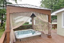 FOUR SEASON HOME - Fully Furnished 2 Bedroom / 2 Bath Bungalow in a quiet location just 2 minutes from Lake Huron. Enter into the spacious living room with an inviting fire place. Kitchen includes white cabinets, lots of counter space and a breakfast bar. Appliances included. The dining room is large enough to accommodate a large table and hutch. Bright family room with another fireplace, lots of windows and sliders to the front deck and Gazebo. Four season sunroom leads to the rear wraparound deck with a "lakeview" Hot Tub. Two decent sized bedrooms. Laundry located in the en suite. Second bathroom (4PC) includes a tub/shower. Laminate floors throughout. Propane furnace (2022). Insulated crawl space. Beautiful yard with perennial gardens. Shed with hydro includes all of the tools and lawnmower. Metal roof. Security systems with outdoor cameras. This home would suit someone looking to retire comfortably and inexpensively. Land lease will be $2600 for the first year and will increase $100/year until it reaches $3000. Band fees approx $2250/year. No conventional mortgages available for leased land. Buyers must have current police checks and proof of insurance before closing. Home cannot be rented out. Seller will have septic pumped out and inspected to meet band requirements before closing. Close to golf, restaurants, shopping and of course the stunning beaches along Lake Huron. (id:7525)