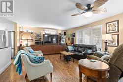 Unique Residential & Commercial Opportunity in desirable Port Franks! Welcome to this beautifully maintained and updated bungalow nestled in the charming lakeside community of Port Franks. Situated on a quiet treed lot, this property offers incredible potential for homeowners, investors, business owners or a combination to suit any buyer. The spacious main home features a bright and airy open-concept layout boasting a large kitchen loaded with storage, stainless steel appliances and wrap around island with two-tier breakfast bar; 2 bedrooms and 2 full bathrooms including primary suite with walk in closet and spa-like ensuite; living room with laminate flooring; dinette with direct access to the backyard; main floor laundry; and office space with built-in shelving. Enjoy your morning coffee and the sounds of nature in the private treed backyard or on the generous front deck. A large detached garage/workshop has 200amp service, 2-piece bathroom, and sink with counter and shelving providing ample space for hobbies, storage, parking or entrepreneurial use. At the rear of the property, you'll find a two-storey dwelling with two self-contained, and fully furnished apartment units with shared laundry hook-up, including main floor one bedroom unit and upper unit with two bedrooms plus den, kitchen with dishwasher hook-up, along with private deck - ideal for rental income or visits with extended family. Whether you're looking for a peaceful home base, an income-generating property, or a unique business opportunity, this one-of-a-kind property offers endless possibilities in a sought-after location near beaches, trails, and amenities. Dwellings are all well insulated, 2 operate. septic (apartment & shop share one). Updates include: Furnace and A/C 12 yrs, metal roof 10 yrs, shop metal roof 6 yrs, windows and exterior doors 13 yrs, kitchen 13 yrs, main bath 12 yrs, ensuite 7yrs, extension on rear of home 13 yrs, soffit and fascia 13 yrs, gazebo 3yrs (all ages are approximate). (id:7525)