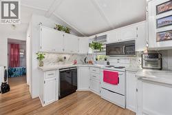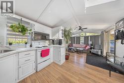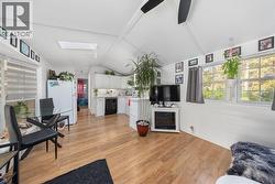 Enjoy quiet, affordable living in this beautifully updated all-season, two-bedroom home in Oak Grove Park’s adult lifestyle community. Spend time in the outdoors while being just 4k from the lake through the Ausable cut, just minutes from Pinery Provincial Park & the local favourite restaurant, Grog's. Grab a season pass and enjoy the pool at Oakridge campground. You won't forego privacy, in this quiet park with a separate, private driveway. This home features vaulted ceilings, an open-concept layout, and updated laminate flooring. The kitchen offers oak cabinets, laminate counters, skylight, and appliances included. Lose track of time in your private oasis with your covered front porch or hot tub in the sound of nature. Other recent updates include a new furnace ('24), steel roof ('24), and new carport. A life of peace and quiet is here! Land lease fee: $358.75/month. (id:27)