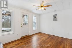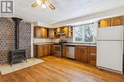 Welcome to 2880 Highway 511, just outside Lanark Village. This large multi-generational home boasts plenty of potential. Set on a country lot, this property offers space and versatility for families looking to live together or for those interested in rental or Airbnb opportunities. The main floor features an open concept kitchen, living, and dining area with rustic details such as an exposed wood beam, built-in hutch, crown moulding, and pot lights. A cozy wood stove anchors the living room, while the kitchen provides extensive cabinetry. This level also includes two bedrooms, an office and a large storage space. Upstairs, the second floor functions like a separate unit, with its own kitchen, dining, and living room. There are three additional bedrooms, including a primary with walk-in closet, plus a full bathroom, laundry and a huge second-storey balcony overlooking the backyard. Outside, the massive and fenced backyard is perfect for family use and is great for dogs. Convenient highway access with a country setting. (id:27)