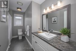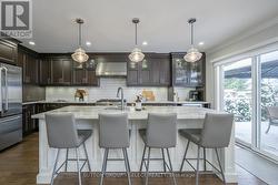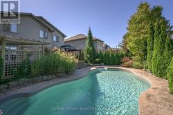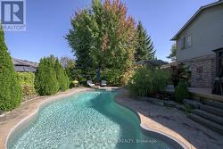 Set on a quiet crescent in the Masonville Public School catchment, this exquisitely upgraded executive home delivers refined living and a resort-style backyard retreat rarely found in the city. Minutes to Western University, University Hospital, St. Joseph's, Sunningdale Golf, and Ivey, the location is unmatched for academic, medical, and professional families. Playgrounds, community parks, and the Medway Valley Heritage Forest trail system elevate the lifestyle with nature just steps away. Inside, the home offers a warm, polished atmosphere with a gracious foyer, separate dining room, and a sun-filled living room with a fireplace and sweeping backyard views. A main-floor office provides a quiet, private workspace set apart from the principal rooms. Premium window treatments, rich hardwood flooring, and fresh neutral tones underscore the home's elevated aesthetic. The kitchen is a showpiece-designed with intention, luxury, and performance in mind. Wall-to-wall cabinetry creates exceptional storage and prep space. Stainless appliances include an impressive 6-burner gas range, while espresso cabinetry with backlit rain-glass uppers adds dramatic depth. Granite surfaces enhance the space and the contrast-tone, 4-seat island. The laundry/mudroom enhances daily function with built-in cabinetry, a full folding counter, and garage access. Upstairs, the generous primary suite offers a walk-in closet and a spacious ensuite. Three additional bedrooms share a refreshed main bath, and the lower level provides substantial storage and future potential. The backyard is the true showstopper: a heated pool anchors a private outdoor resort with multiple zones for lounging, dining, entertaining, and relaxing. A pergola lounge, tiki hut/bar, dining gazebo, and manicured green space framed by mature trees create a setting that feels worlds away. With a double garage and commanding curb appeal, this home delivers exceptional family living in one of London's most desirable neighbourhoods. (id:27)