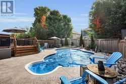 Welcome to this beautifully updated 3+2 bedroom family home in a sought-after neighbourhood. Recent upgrades include a brand new roof (Nov 2025), fresh paint, updated flooring, and select light fixtures (Jan 2026), beautifully decorated & move-in-ready. This home is a total of 3282 sqft of finished living space, above grade 2208 sqft & lower level finished 1073 sqft. The main floor offers a bright, open-concept layout with hardwood and tile flooring throughout. The stylish kitchen features granite countertops, stainless steel appliances, backsplash, and an island, flowing seamlessly into the eating area and inviting family room with a feature wall, built-in electric fireplace, and large windows overlooking the backyard. Convenient main floor laundry with appliances included. A hardwood staircase leads to a versatile loft-ideal as a home office, lounge, or play area. The spacious primary suite includes two walk-in closets and an ensuite with soaker tub, tiled shower, and large vanity. Two additional generous bedrooms and a modern 4-piece bath. The fully finished lower level expands your living space with a large rec room, custom bar area, media zone, two bedrooms, office or gym space, and a sleek 3-piece bath, all with newer flooring & paint. Step outside to your private backyard oasis featuring a deck, newer concrete patio, and a heated in-ground Hayward saltwater pool surrounded by lounging and entertaining areas. A double garage and a newer concrete driveway. Located close to schools, parks, and shopping, this polished home checks all the boxes for comfortable family living. (id:27)