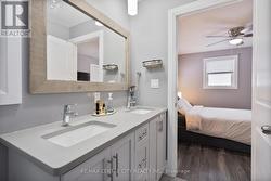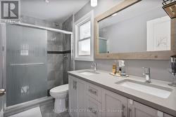 Welcome home to this beautifully updated solid brick bungalow, ideally located in the highly sought-after Kensal Park neighbourhood-one of London's most desirable and family-friendly communities. Surrounded by mature trees and close to top amenities, parks, scenic walking trails, and just minutes from downtown London, this location offers the perfect balance of tranquility and convenience. Set on a mature, fully fenced 62 x 122 ft lot, the property provides exceptional curb appeal with a covered front porch, a private driveway accommodating up to five vehicles, and a detached garage-ideal for busy families and entertaining guests. Pride of ownership is evident throughout, with extensive updates already completed. The main floor welcomes you into a bright and elegant living space filled with natural light from oversized windows. At the heart of the home is the beautifully updated kitchen, featuring quartz countertops, an island, and a functional open layout that flows seamlessly into the dining area-perfect for everyday family living and hosting. This level also offers three spacious bedrooms and two full bathrooms, including a beautiful ensuite. Patio doors off the dining area lead directly to the backyard, where a stamped concrete patio creates an ideal outdoor retreat for family gatherings and summer entertaining, with space for a BBQ, hot tub, dining area, and lounge furniture. The fully finished lower level expands your living space and versatility, offering a generous recreation room with an egress window, a large fitness room that can easily be converted back into two additional bedrooms, a full bathroom, den, laundry room, cold room, and a utility room with ample storage-perfect for growing families or multigenerational living. Major updates include the furnace, central air, roof, electrical, and so much more, providing peace of mind for years to come. A truly well-cared-for home in a premier neighbourhood-this is a rare opportunity you won't want to miss. (id:27)