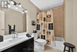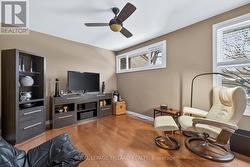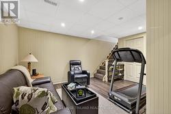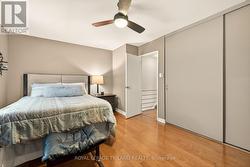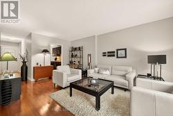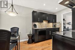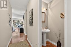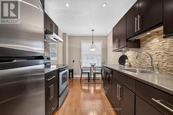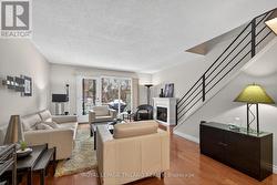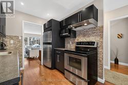 Immaculate & Refined Living. Where sophistication meets function; this immaculate residence feels like stepping into a boutique hotel. Thoughtfully chosen wall tones create a warm, calming ambiance throughout, complemented by pristine hardwood flooring on the main and second level. This 2-bedroom, 1.5-bath home offers an effortless blend of style and comfort. The sultry kitchen is both striking and practical, featuring a tile backsplash, sleek ebony cabinetry, and a seamless flow into the open-concept, airy, living area, flooded with natural light. Perfect for dining, entertaining, or relaxing. A glazed patio door and over sized windows overlook a private patio that extends to tranquil green space, offering a rare sense of seclusion on a preferred lot. Upstairs, the bright and spacious bedrooms provide peaceful retreats, with a full wall of closets in the primary. The second bedroom easily adapts as a family room, home office, or study. The lower level adds versatility with a cozy den, along with a generous laundry and storage area. Lovely gardens grace both the entrance and patio, setting the scene for morning coffee or an intimate evening outdoors. Completing the property, is the rare convenience of an assigned parking space directly at the front door. A serene, stylish condo designed for modern living. (id:27)