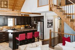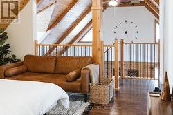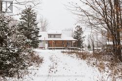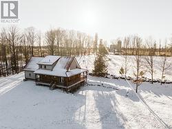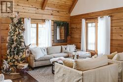 From the moment you turn onto the tree-lined canopy laneway, you'll know you've arrived somewhere truly special. This quality-built "Discovery Dream" modern log home offers a warm and inviting open-concept layout, highlighted by soaring cathedral ceilings and a charming loft that overlooks the main living space. A striking red steel roof and a wrap-around covered porch complete the classic yet timeless exterior.Set on nearly 16 acres of storybook countryside, the property is a nature lover's dream. Wander the private trails that wind through mixed bush, enjoy the peaceful stream, and take in the beauty of open fields that offer endless possibilities. Create your own maple syrup. Additional features include a screened gazebo for relaxing summer evenings, a workshop, raised garden beds, and ample space to explore, create, and unwind.This is more than a home-it's a lifestyle, offering privacy, charm, and endless opportunities to live your country dream. (id:27)