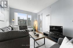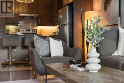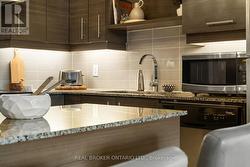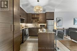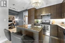 Luxury and lifestyle meet in this exceptional 1 + Den residence at Eden Park! Experience modern living in this beautifully upgraded suite featuring a sleek kitchen with stainless steel appliances, granite counters, and a spacious island. The open-concept living area extends to a private balcony - perfect for relaxing or entertaining. Enjoy a bright primary bedroom and a versatile den ideal as a home office. With 9-ft ceilings, premium finishes, and ensuite laundry, this unit blends comfort and style. Amenities include a fitness center, pool, sauna, party room, and 24-hour security. Steps to restaurants, parks, transit, and more. Includes parking and locker - ideal for first-time buyers, investors, or downsizers! (id:27)