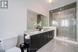 Backing onto a golf course with open, unobstructed views, this well-maintained link-by-garage home offers almost 2,000 sq.ft. of bright above-grade living space in a quiet, family-friendly Markham neighbourhood surrounded by forests and trails. Thoughtfully designed with 9-ft ceilings on both main and second floors, hardwood flooring on the main level and upper hallway, and a functional layout ideal for everyday living and entertaining.Both the main-floor kitchen and the professionally renovated basement kitchen feature granite countertops, undermount sinks, upgraded faucets, and stainless steel appliances. The spacious primary bedroom includes a 5-pc ensuite with frameless shower, double sinks, and soaking tub, plus a walk-in closet. Convenient second-floor laundry adds to daily comfort.A builder-installed separate side entrance leads to a fully finished basement with two bedrooms, a full-size kitchen, a 3-pc washroom, and a cozy living area, featuring tile flooring in the kitchen and durable laminate flooring throughout the remaining living spaces - offering excellent income, in-law, or multigenerational potential.Both front and backyard are finished with interlock, with the backyard slope professionally flattened for usability and comfort. The fully fenced backyard overlooks the golf course, while the widened front interlock allows additional parking for a small vehicle. Owned tankless water heater - no rental fees.Close to parks, trails, community centres, schools, shopping, TTC/Viva transit, and easy access to Hwy 407 & 401. A rare opportunity combining views, flexibility, and location. (id:27)