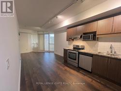 Luxurious Downtown Markham Condo suite in Fontana Square. Newly renovated 1 bedroom plus den that can be used as a second bedroom features an open concept kitchen, living room layout, and an east-facing balcony. Fresh flooring and finishes throughout, inclusive of 5 major appliances. Amenities include 24-hour concierge and security, a big modern party room with walkout patio and BBQ, visitor parking, indoor pool and basketball/ badminton court, gym/exercise facility, upper floor lounge and waiting areas with glass wall views of gymnasium and swimming areas . Attached to Viva/YRT enclosed heated substation, minutes to highways 407 ETR and 404. Downtown Markham's Town Centre offers walking scores to top rated school of the arts, Unionville H.S., Markham Civic Centre, Flato Markham Theatre, major shopping centres, malls, restaurants, bars, cinemas, and so much more, while in short driving distance to all needs. Great for living, an investment property and first-time home buyers. (id:27)