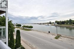 Welcome to 34 Bayfield Street, Unit 402 - a beautifully appointed top-floor 2-bedroom, 2-bath condo overlooking the harbour in one of the area's most sought-after locations. This charming residence offers the perfect blend of peaceful waterfront living and modern comfort.Step into the inviting foyer and enjoy a bright, open-concept layout filled with natural light, ideal for both everyday living and entertaining. The spacious living room features a sliding door that opens to a private balcony, showcasing stunning harbour views and creating the perfect indoor-outdoor connection. The living and dining areas flow seamlessly into the kitchen, which is equipped with modern appliances, ample counter space, and generous cabinetry to meet all your culinary needs.The primary bedroom suite offers a comfortable and relaxing retreat, complete with a private en-suite bath and picturesque water views. The second bedroom is generously sized and conveniently located near the second full bathroom, making it ideal for guests, a home office, or additional living space.One of the standout features of this top-floor unit is the serene harbour view, enjoyed from multiple rooms - perfect for sipping your morning coffee or unwinding at the end of the day. Additional highlights include a single-car garage for added convenience.Ideally situated just a short walk from the theatre, shops, and restaurants, 34 Bayfield Street offers an exceptional combination of comfort, convenience, and natural beauty. Don't miss your opportunity to make this stunning waterfront condo your new home. (id:27)