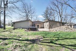 Beautiful 5.8 Acres corner lot with a 3,071 SQFT bungalow, 883 feet of frontage and 285 feet deep with a 20x40 workshop. If your looking for a large private property outside the city then look no further then this perfect family lot, volleyball court, wave hot tube (swim spa), custom fire pit, and outdoor shower. Custom kitchen, over sized island, quartz counter tops, lots of storage, multiple fireplaces, large custom primary bathroom with jetted bathtub, central vacuum, Geothermal ground source heating and air conditioning. Just 15 minutes from London to this quiet large paradise. (id:27)